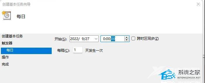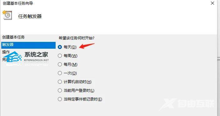 5、设定任务运行频率,我们选择“每天”,点“下一页”。