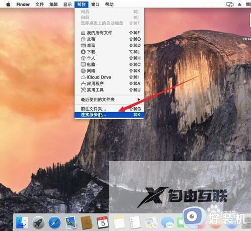 2、苹果MAC系统,点击桌面。打开顶部菜单 前往。