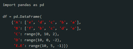 'B': ['f', 'b', 'c', 'd', 'e'],
