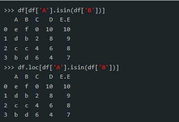 我们现在选取 A列字母出现在B列 的所有行。先看两种常见写法。