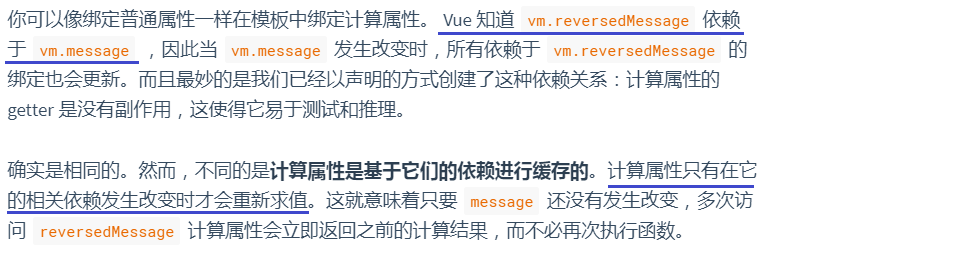 通过对存取器属性、闭包和观察者模式的综合运用,Vue 巧妙的实现了计算属性。现在再看官方文档描述,是不是更通透了呢。